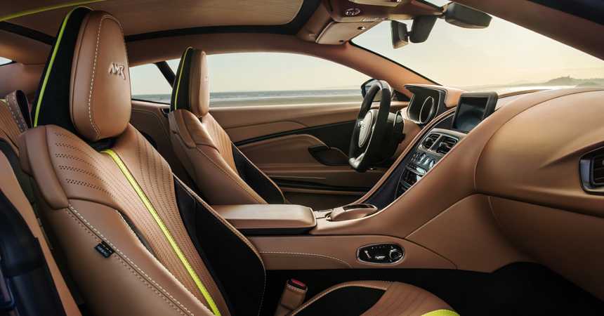 DB11 отличается полностью обновленной кабиной по сравнению с DB9 : центральная консоль лишена множества кнопок, функции которых перенесены на 8-дюймовый экран.