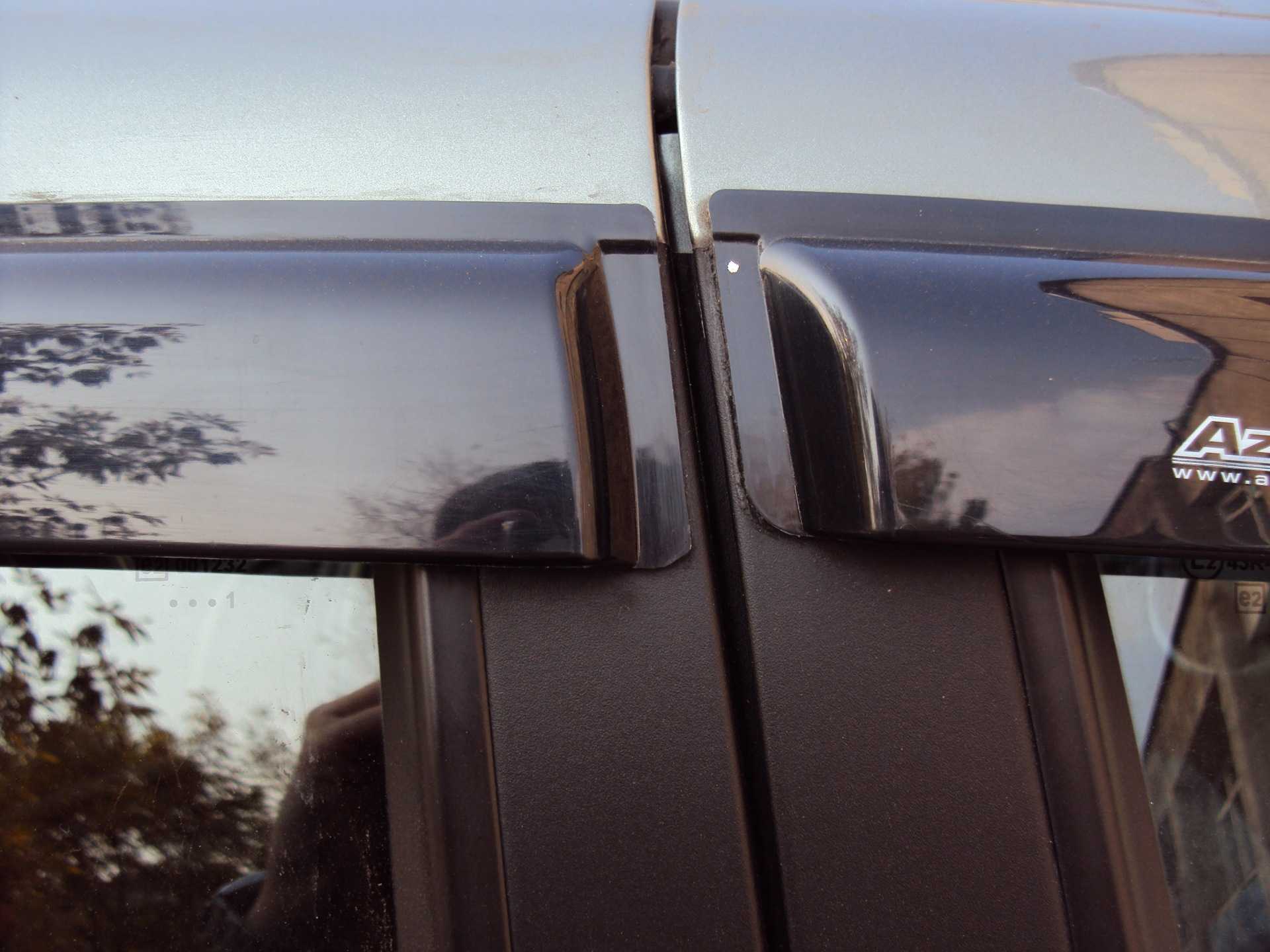 - Необходимо закрепить посредством монтажного скотча дефлекторы над задними/передними боковыми окнами;