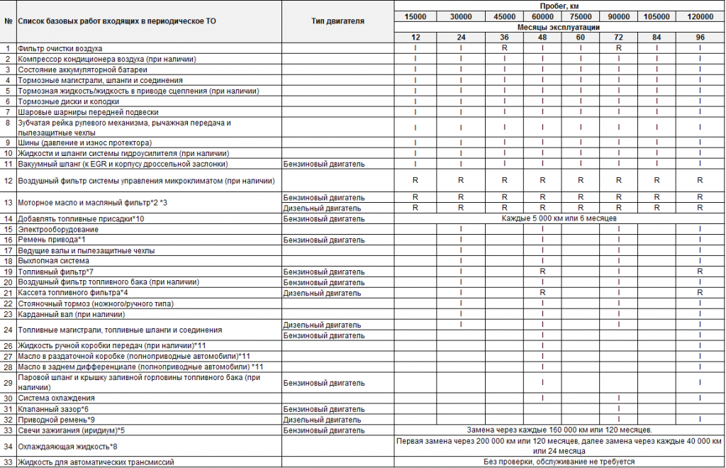 Имеются аналогичные регламенты плановых ТО Ниссан, Мерседес, Мазда. Одним словом существуют сетки работ на периодическое техобслуживание абсолютно всех марок выпускаемых машин.