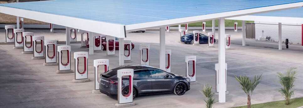 Отдельно стоит выделить Tesla Supercharger. Преимущество Tesla Supercharger — в мощности и, соответственно, скорости пополнения заряда аккумуляторной батареи. Максимальная мощность мировой сети Supercharger V2 —120 кВт. Это означает, что батарея Tesla Model S (90 кВт⋅ч) полностью заряжается примерно за 40 минут. Третье поколение Tesla Supercharger V3 обладает пиковой мощностью в 250 кВт.