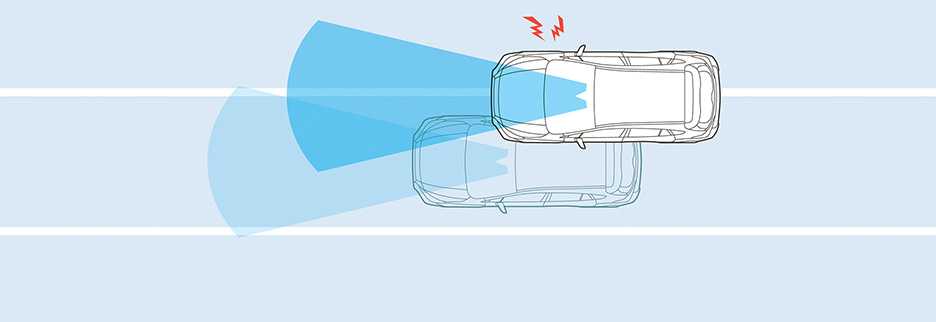Анализирует и оценивает опасность столкновения с едущим впереди автомобилем, если резко сокращается дистанция между авто. Аналогично система срабатывает если впереди будет и иной объект.