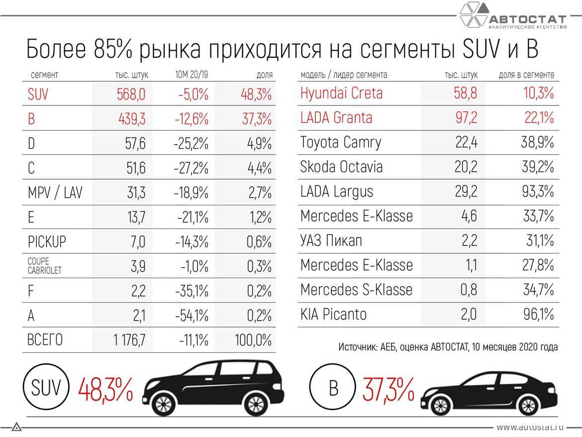 Что касается структуры, то ее можно признать сформировавшейся: львиную долю российских продаж новых автомобилей уже долгое время удерживают 10 наиболее локализованных на территории РФ марок: помимо традиционного лидера Lada это (в порядке убывания) Kia, Hyundai, Renault, Volkswagen, Skoda, Toyota, Nissan, Mitsubishi и Mazda. Все остальные, не считая брендов, специализирующихся на легком коммерческом транспорте, делят остатки легкового сегмента.