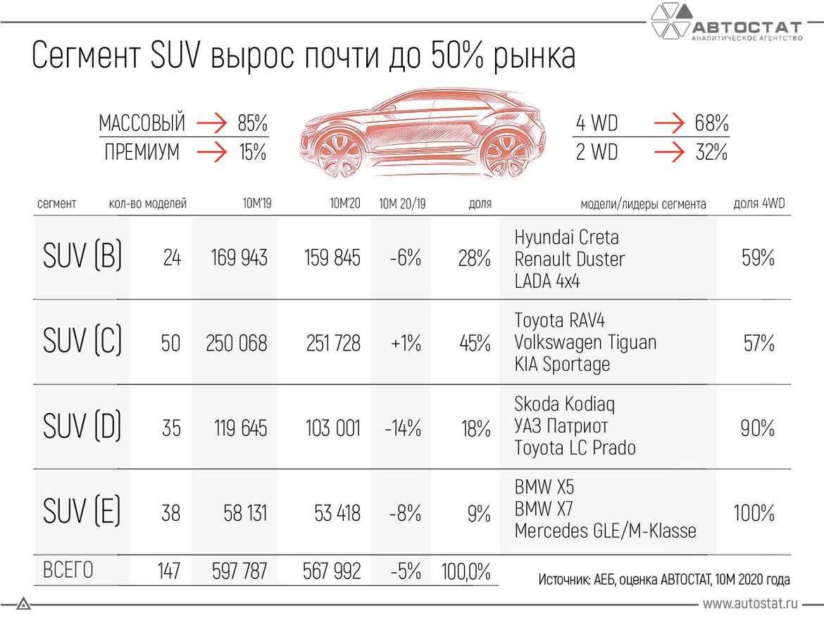 Российским потребителям за последние годы полюбились кроссоверы и внедорожники. Самый доступный внедорожник — Лада Нива. Классическая модель стоит от 819 000 рублей. Следующей моделью по доступности является Лада Нива Тревел. Модель оценивается в 1,1 млн. рублей.