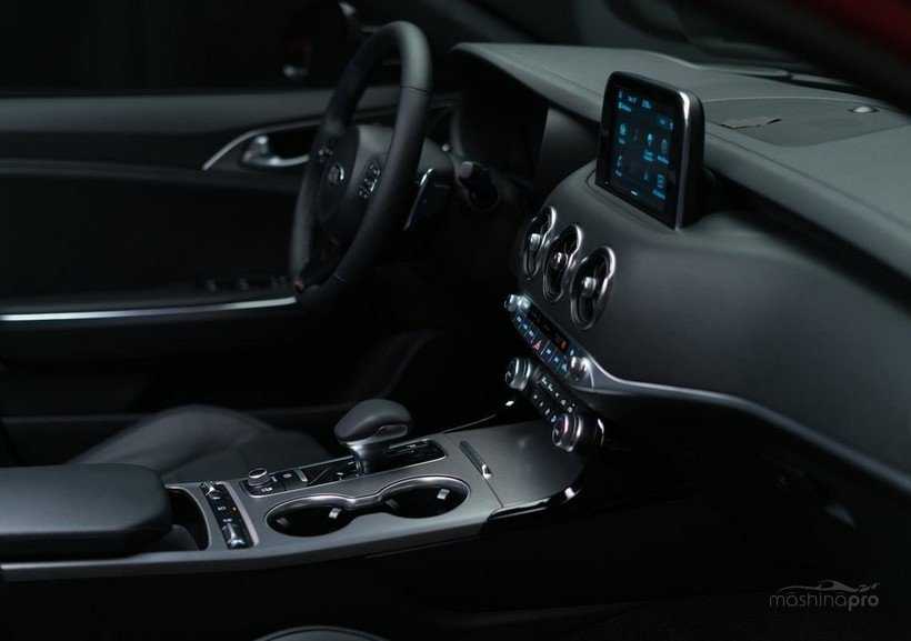 Корейские специалисты при сборке Киа Стингер 2018 использовали качественные и приятные на ощупь материалы. Свободного места хватает как на переднем, так и на заднем ряду. Единственное, сидящему по центру пассажиру будет немного мешать напольный трансмиссионный тоннель. Машина обладает различными электронными системами и ассистентами, помогающими водителю управлять немаленьким авто.