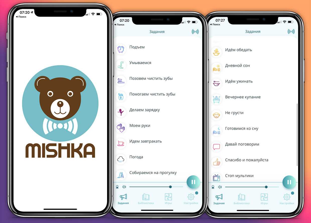 Позовёт ребёнка спать, купаться и позовёт делать зарядку. Да и разбудит тоже. Почти два десятка таких программ доступны через приложение Mishka в App Store и Google Play. Используете их в контексте ситуации и получаете дополнительный мотиватор для ребёнка сделать что-то полезное.