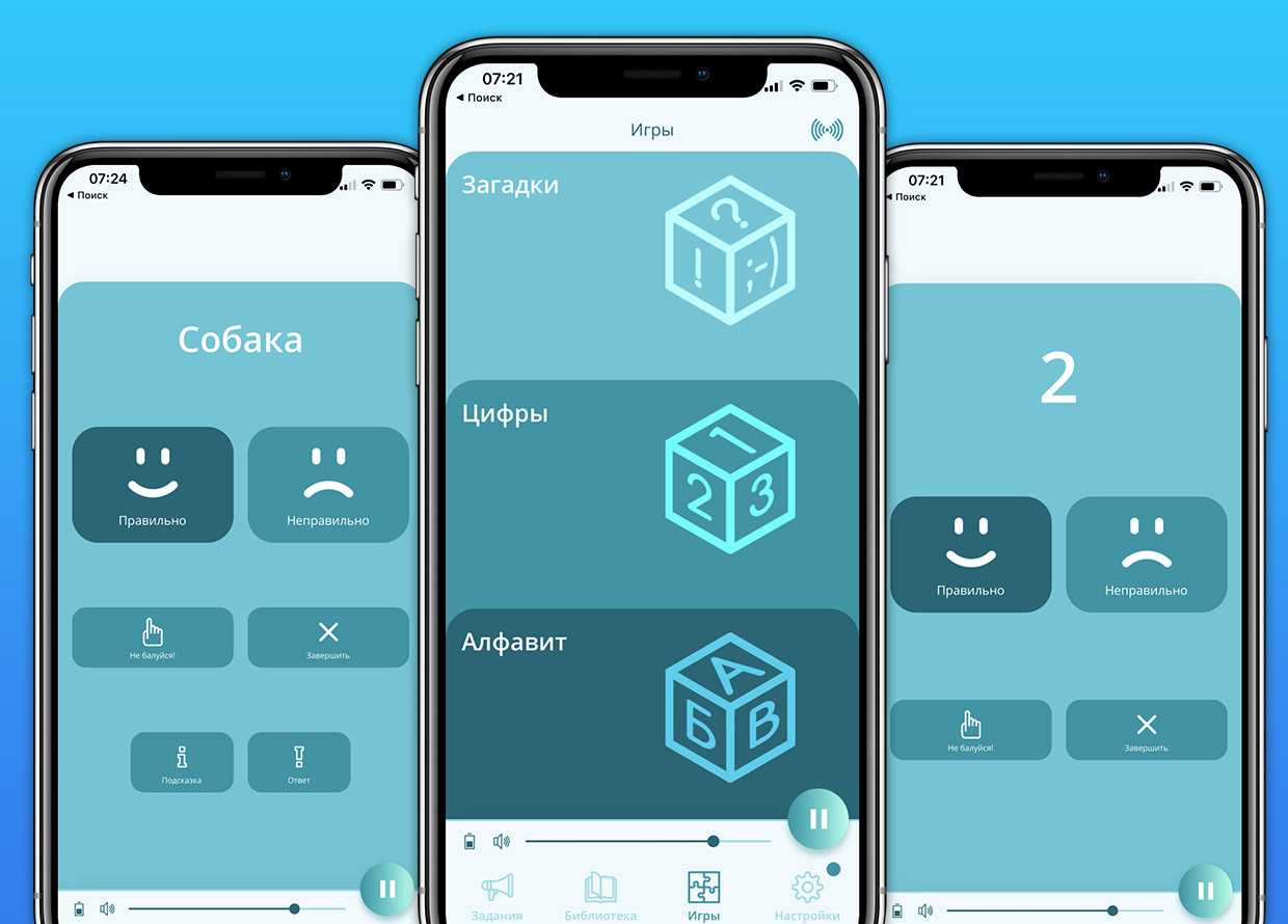 Здесь родитель выступает в качестве наблюдателя: в приложении видны кнопки «правильно/не правильно», вы просто нажимаете на нужную, подтверждая действия ребёнка. Есть и кнопка «не балуйся», хотя я ни разу её не нажимал. Для загадок предусмотрены подсказки, а также озвучивание правильного ответа.