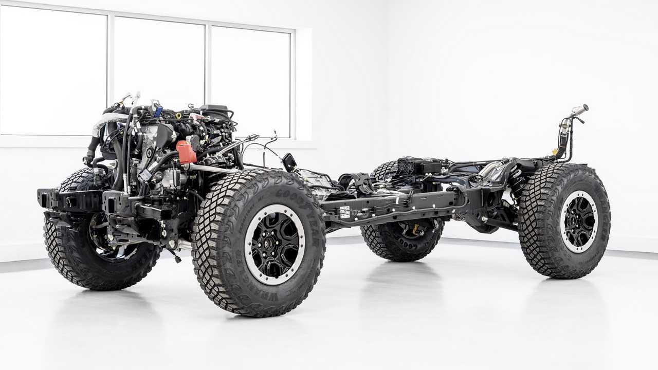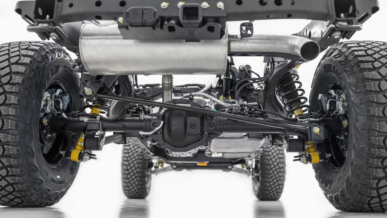 Настоящий Ford Bronco — рамный внедорожник. Сзади у него неразрезной мост, а спереди — независимая подвеска.