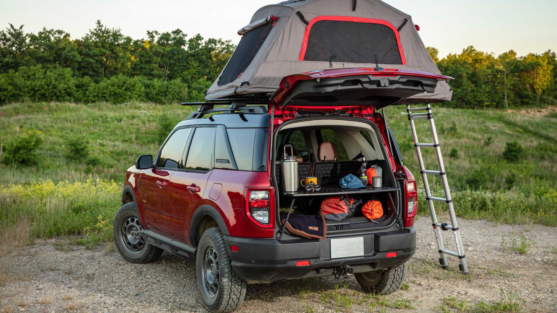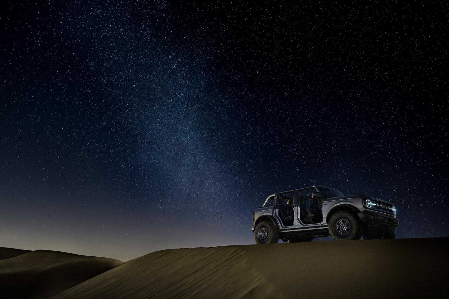 Ford Bronco с двух- или четырехдверным вариантом кузова, мягкой или жёсткой крышей, а также съёмными панелями кузова предлагает те же возможности откидного верха, которые делают Wrangler фаворитом среди любителей свежего воздуха. Интерьер Bronco также может похвастаться большим количеством инноваций, чем Jeep.