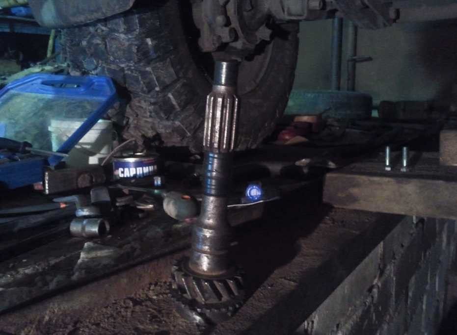 - Фланцы карданного вала отсоединяют от редуктора и барабанного ручника.