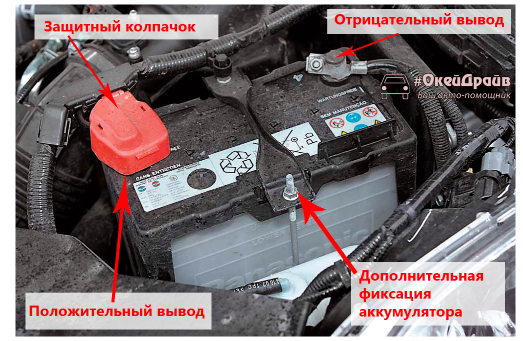 Снимать аккумулятор с автомобиля рекомендуется после того, как двигатель остынет. Это позволит избежать случайного ошпаривания кожи (или перчаток) о горячие элементы двигателя. Как мы уже говорили выше, снимать аккумулятор следует только при выключенном двигателе.