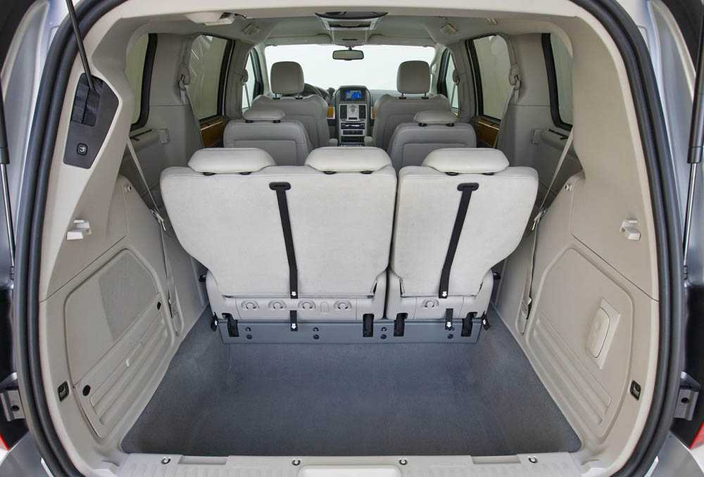 В 5 поколении у Chrysler Voyager багажный отсек вмещает от 934 литров. Если опустить третий ряд, получится 2394 литра. А при опущенных креслах второго ряда — все 3912 литров.