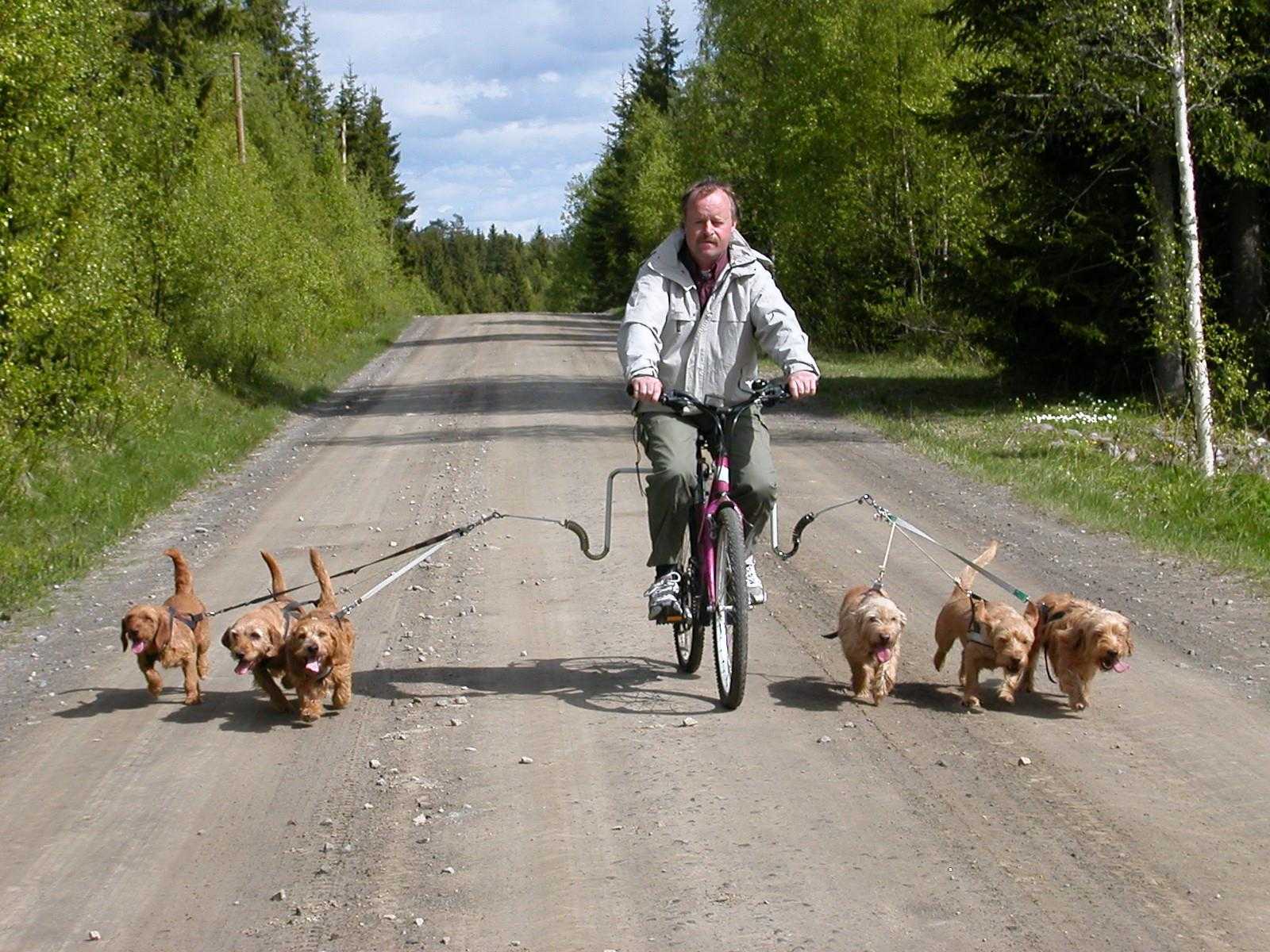 Все эти устройства можно крепить с любой стороны велосипеда, и кому-то, возможно, захочется совершать прогулки сразу с двумя компаньонами — по одному с каждой стороны. Тогда можно подумать о трехколесном велосипеде и немного модифицировать его, чтобы собаки везли вас, как в упряжке. Смотрите видео: