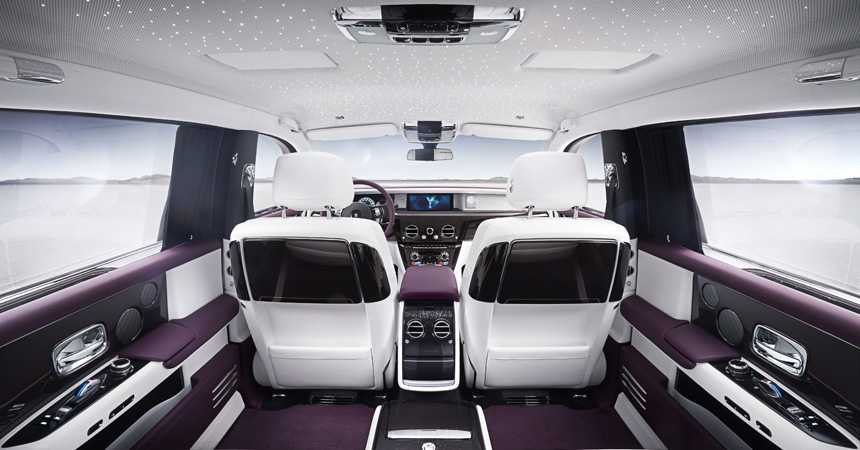 Внутреннее убранство «восьмого» Фантома обладает атмосферой сдержанной роскоши, которая свойственная английской потомственной аристократии. Сидения, вместе с некоторыми элементами отделки изготавливают из кожи быка, раскрой которой производят с помощью специального лазера.