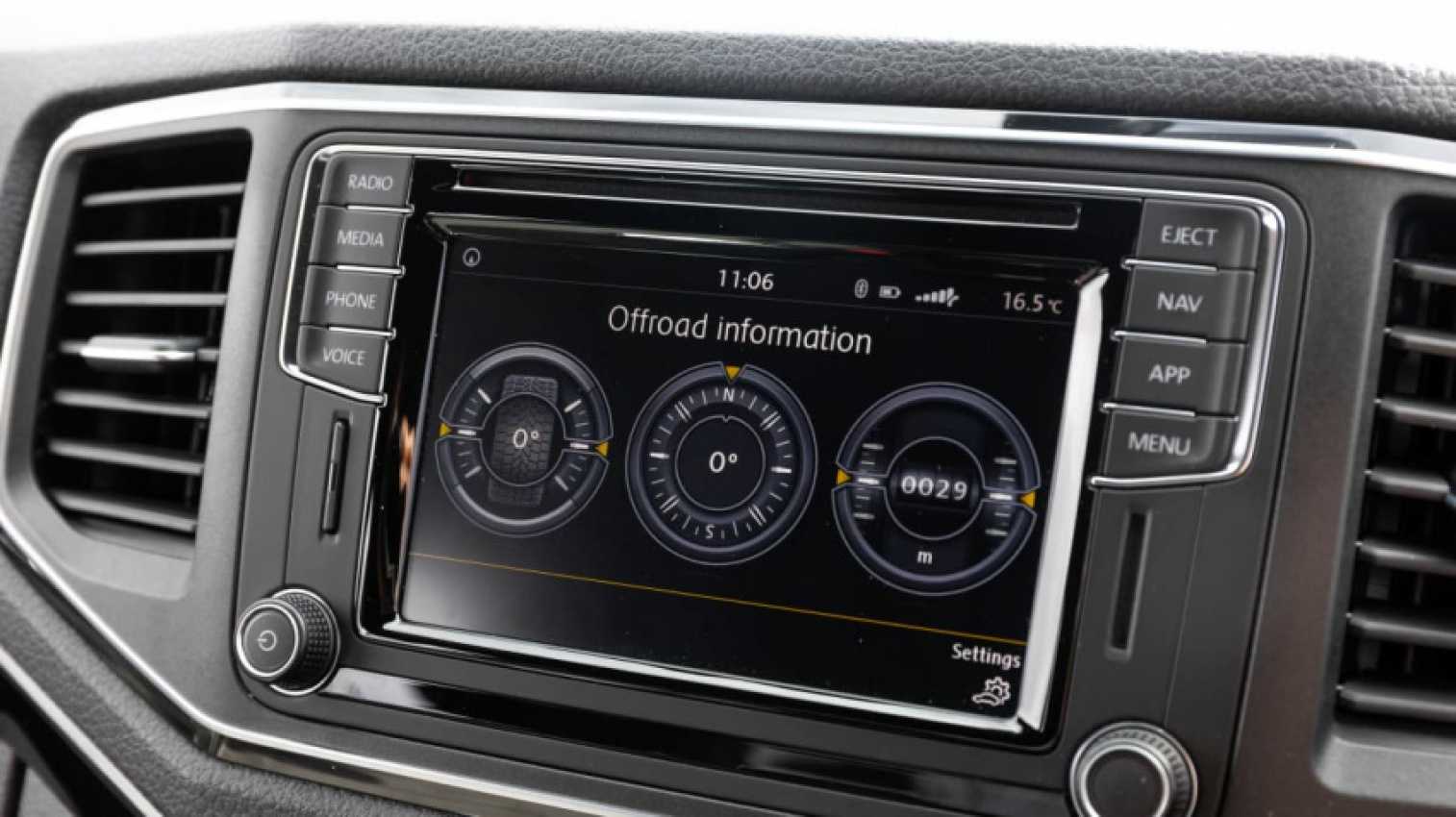 Analogue dials sit ahead of the driver but they’re pleasant to look at, and sit astride a colour trip computer offering a digital speedometer, plus detailed navigation and media information. Expect to see digital gauges in the all-new Amarok launching late next year.