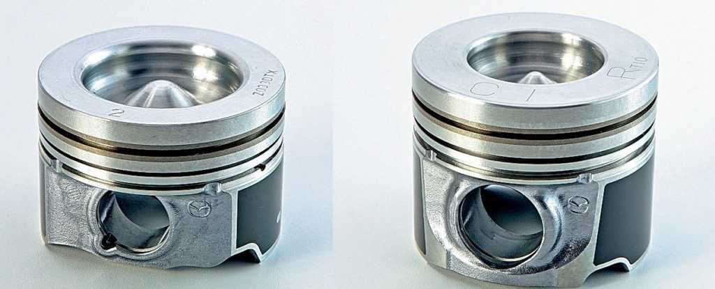 Бензиновые двигатели оснащены достаточно простыми в изготовлении поршнями с плоской головкой. Некоторые модели имеют канавки, способствующие максимальному открытию клапанов. Поршни дизельных двигателей отличаются наличием на днищах выемок – благодаря им воздух, поступающий в цилиндр, лучше перемешивается с топливом.