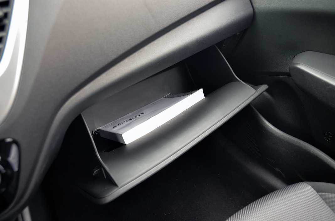 Как и все Hyundai, маленький Accent может похвастаться большинством технологических опций, предпочитаемых более молодыми покупателями, такими как USB-порт, вспомогательное соединение и две 12-вольтовые розетки, все они размещены в крошечном отсеке для хранения под центральной консолью. В крышу встроен держатель для солнцезащитных очков.