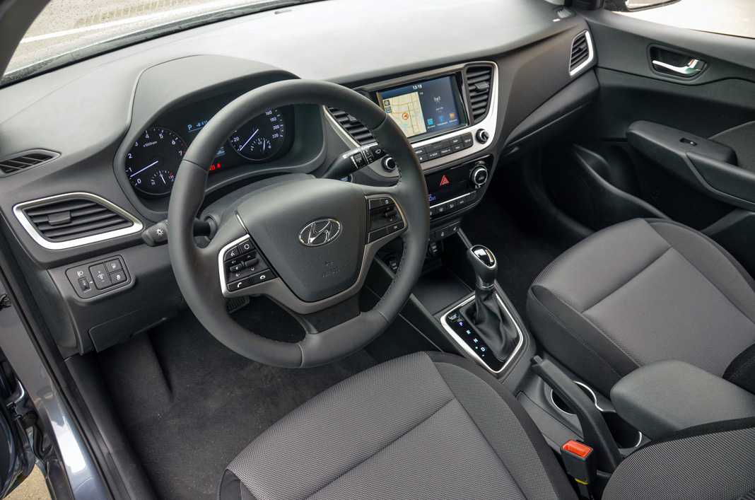 Салон отличается лишь немногочисленными кнопками. Но главное, что Accent имеет иное оснащение, которое больше соответствует запросам американских покупателей. Например, у машины нет подогрева руля и заднего сиденья. Но если это еще можно понять (хотя та же Канада отнюдь не самая теплая страна), то отсутствие центрального подголовника на втором ряду выглядит странно.