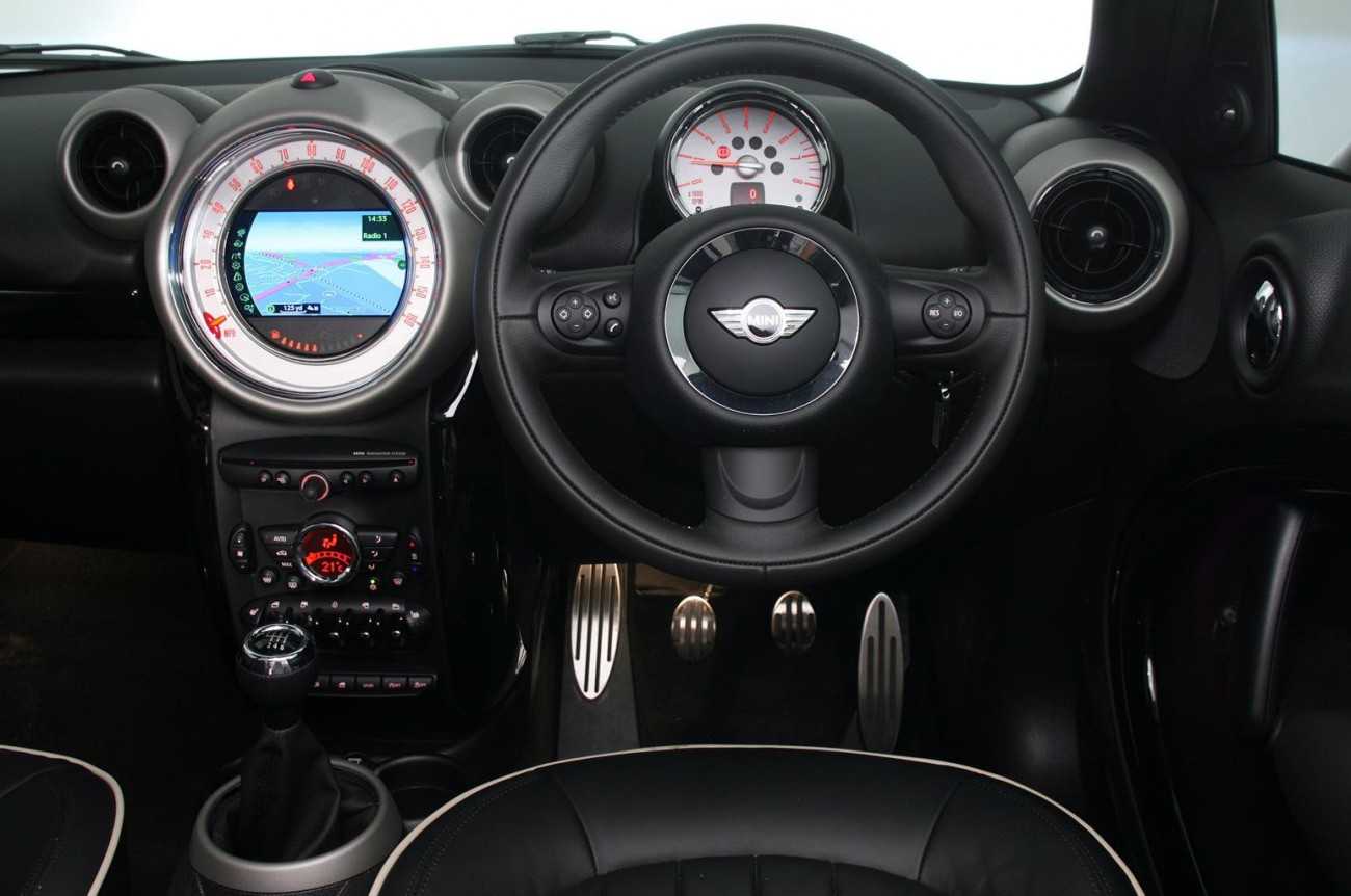 Главная особенность Countryman – центральный спидометр Mini. Тумблеры старой школы и большие хромированные участки тоже добавляют ощущение ретро. К сожалению, элементы управления расположены случайным образом, многие из них неудобные, и некоторые из жестких пластиков, находящихся внизу на приборной панели, вполне могут показывать признаки износа.