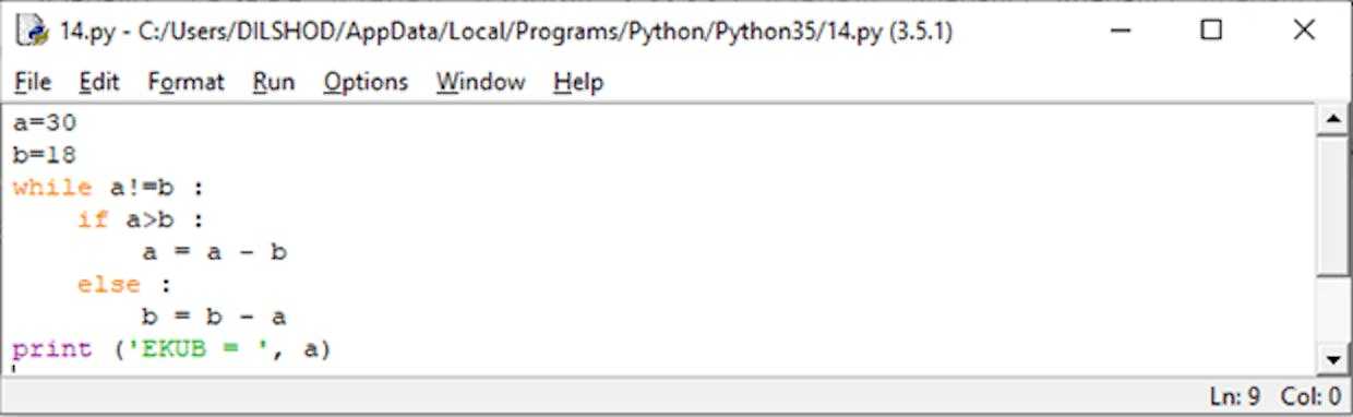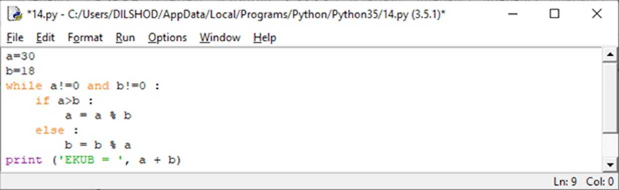 Evklid algoritmi. Ikkita butun sonlarning eng katta umumiy bo’luvchisini topish.