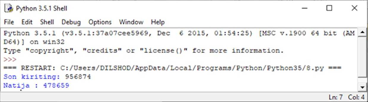 7. Bu xolatni dastlabki son 0 dan kichik bo’lguniga qadar davom ettiramiz.