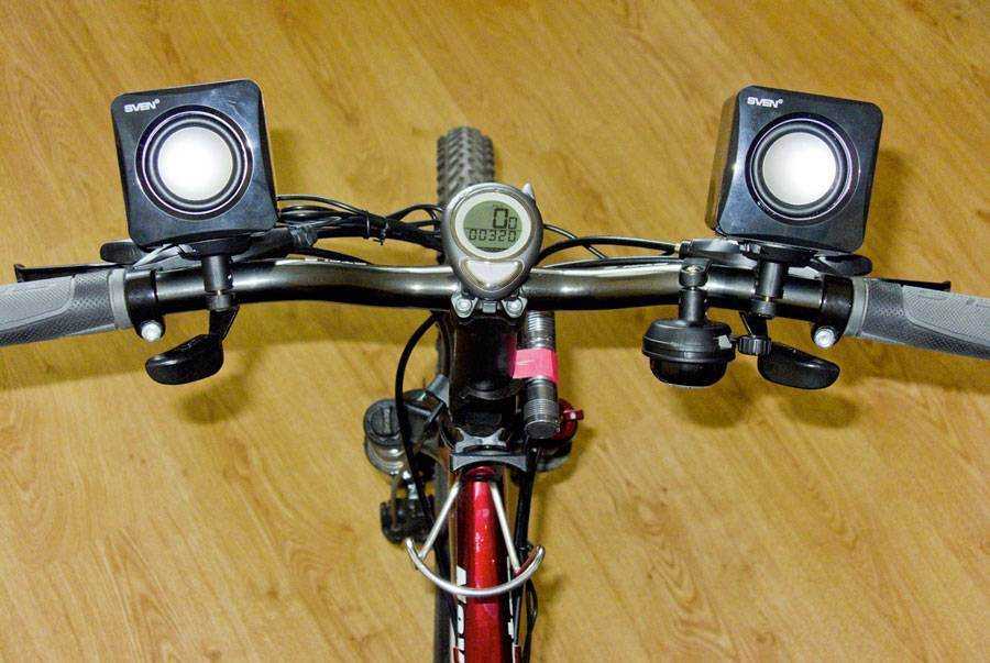 - Колонка может иметь специальное крепление на руль велосипеда, а если крепеж отсутствует, то стоит подобрать оптимальный аксессуар. Такая деталь позволяет зафиксировать колонки на передней части велосипеда и слушать различную музыку;