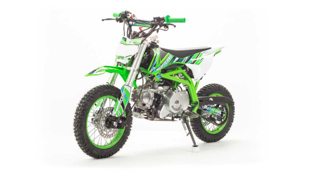 Здесь на сцену выходят питбайки с колесами 14/12. Это всё еще детские мотоциклы, все также с бензиновым двигателем, подходят для детей возрастом примерно от 10 до 15 лет. Весят они уже 70 кг. Как правило, двигатель у всех представителей в этом размере, 125 см3, мощностью 8-10 л.с. Встречаются питбайки как с электростартером, так и только с кик-стартером. Трансмиссия или полуавтомат, где нужно щелкать передачи, но не нужно использовать сцепление, или классическая, взрослая механика. Подвески на таких мотоциклах более длиноходные. Кстати, такие мотоциклы, вполне подойдут и для взрослых, но низких людей. Представители в этом размере, Motoland XT125 14/12 и Kayo Mini YX125EM 14/12. Цена у обоих чуть больше 50000 рублей.