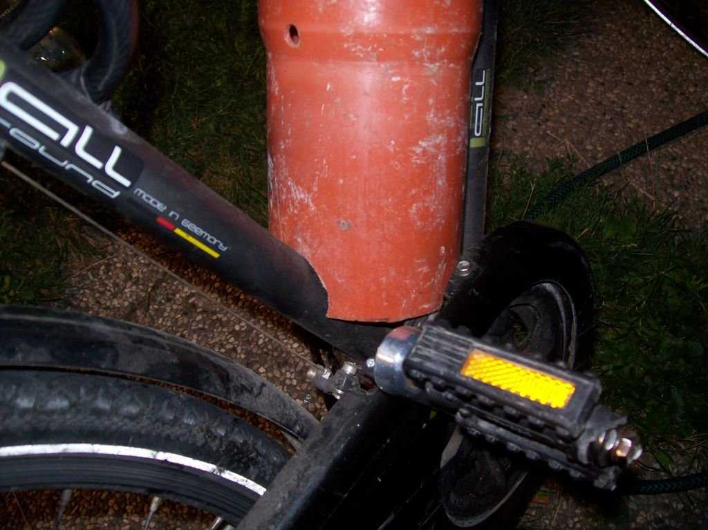 Верхняя труба рамы. Если поход предстоит длинный, то этом месте, как правило, располагаются фляги с дополнительным запасом воды. Обычно они помещаются в чехол или сумку из ткани или кожи и крепятся с помощью ремешков. Возможна также установка держателя из пластика или металлической проволоки. Верхняя труба все же не слишком подходит для перевозки бутылок с жидкостью, особенно нестандартного размера, так как при активном педалировании они могут задеваться коленями и создавать неудобства. Кроме того, по ней обычно проложены тросики.