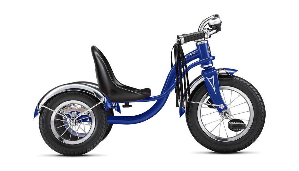 Производит Schwinn и трехколесный велосипед с педалями на переднем колесе – Roadster Trike, подходящий для обучения или неспешных покатушек по хорошим дорогам и адресованный детям в возрасте от одного до трех лет.