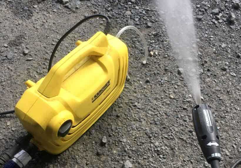 - Нужно всегда держать сопло под углом к поверхности, в идеале, под углом, направленным вниз. Таким образом, не будет разбрызгиваться грязь и пена на только что вымытую поверхность. Распыление под углом к поверхности (25–45 градусов), как уже было упомянуто, позволяет избежать появления царапин от смываемых твёрдых загрязнений.
