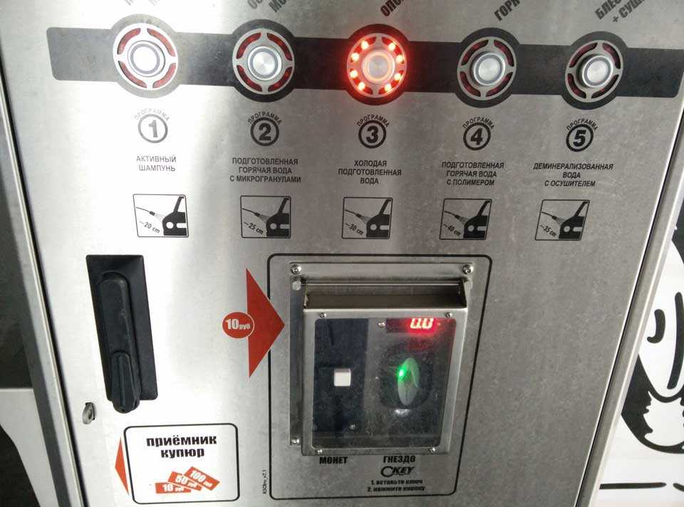 В зависимости от типа мойки платеж проводится разными способами: путем внесения монет / наличных, с помощью бесконтактных платежей или с применением автомата обмена денег на жетоны.