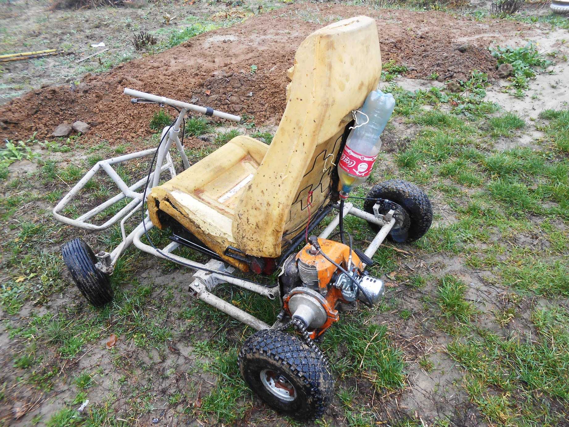 Выбор мотора – дело простое. Чем мощнее будет мотор, тем быстрее будет ездить самодельный картинг из бензопилы. Мощности в 2-3 л.с. будет достаточно, чтобы разгоняться до 20-30 км/ч – большего от такой техники и не требуется. Кстати, можно как из бензопилы сделать картинг, так и из триммера.
