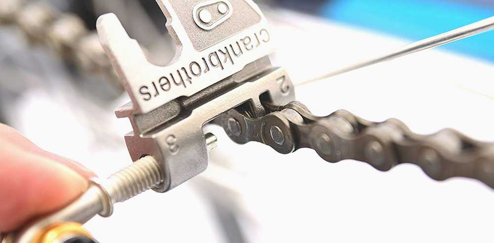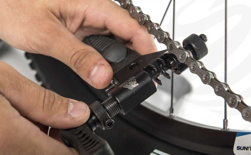 Длительная эксплуатация способна вызвать поперечное или продольное расширение звеньев цепи. Растяжение в поперечной плоскости устранить невозможно. Продольное можно попробовать убрать с помощью снятия одного или нескольких звеньев цепи. Здесь главное не переусердствовать и снять нужное количество. Следите за тем, чтобы цепь проходила по большой звезде без лишнего натяжения, но и не провисала. Это можно сделать при помощи выжимки. Как пользоваться инструментом, мы поговорим далее.