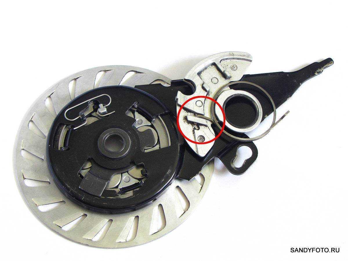 Как видите, конструкция тормоза предельно простая и герметичностью тут даже не пахнет. Поэтому роллерный тормоз нельзя смазывать жидкой смазкой, по причине того, что она оттуда просто-напросто вытечет.