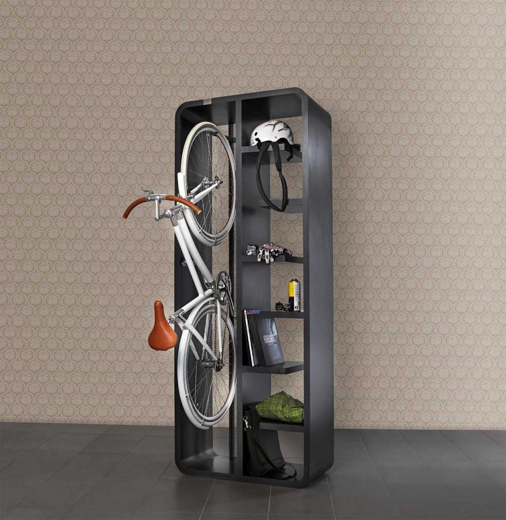 К хранилищам специального назначения относятся шкафы для байков. Отличительной чертой данной части интерьера является его громоздкость. Хранить велосипед в шкафу могут позволить себе владельцы просторных помещений и широких прихожих, где самостоятельно можно соорудить подобный мебельный атрибут.
