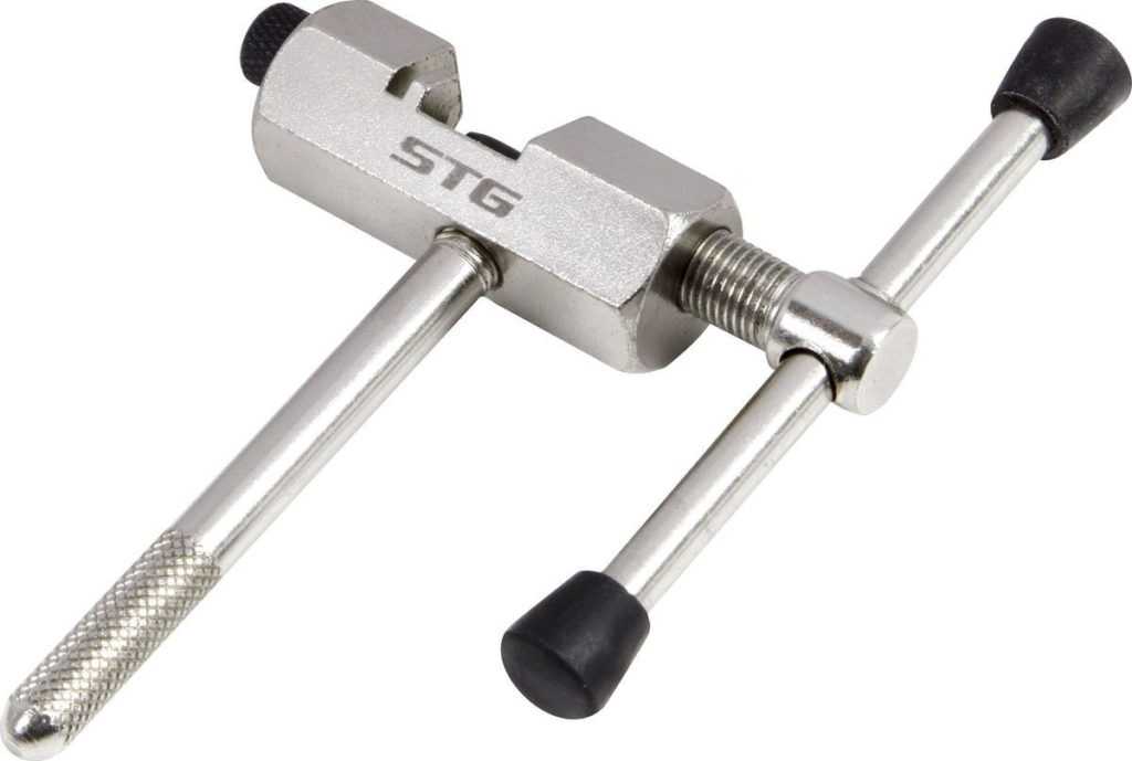 Еще один инструмент от BIKE HAND. Выжимка оснащена упором для удобной фиксации. Подходит для цепей любых производителей. Цена приемлемая, но при использовании могут возникнуть сложности. Во-первых, наличие люфта у выжимного стержня (возможны перекосы при установке пина). Во-вторых, невысокое качество металла. Многие покупатели высказали мнение, что вместо закаленной стали производитель использовал более дешевый сплав. В целом, по мнению пользователей STG «YC-329» неплохой инструмент за свою цену, поэтому включен в обзор.