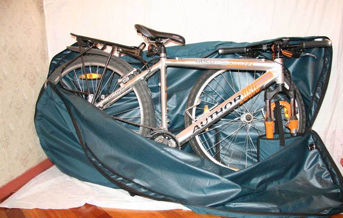 Осознав необходимость наличия специальной упаковки, разумно обзавестись защитным чехлом для велосипеда. Сумка покупается в спортивном магазине или выкраивается самостоятельно с учётом размеров велорамы и колёс. Что касается руля, его разрешается оставлять открытым, благодаря чему будет удобно поддерживать байк.