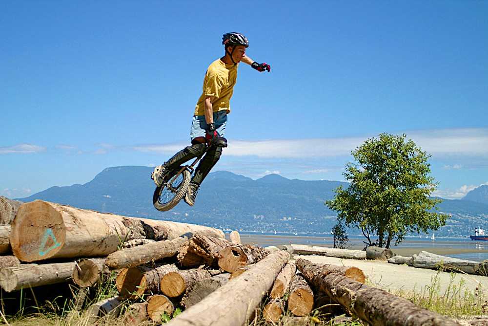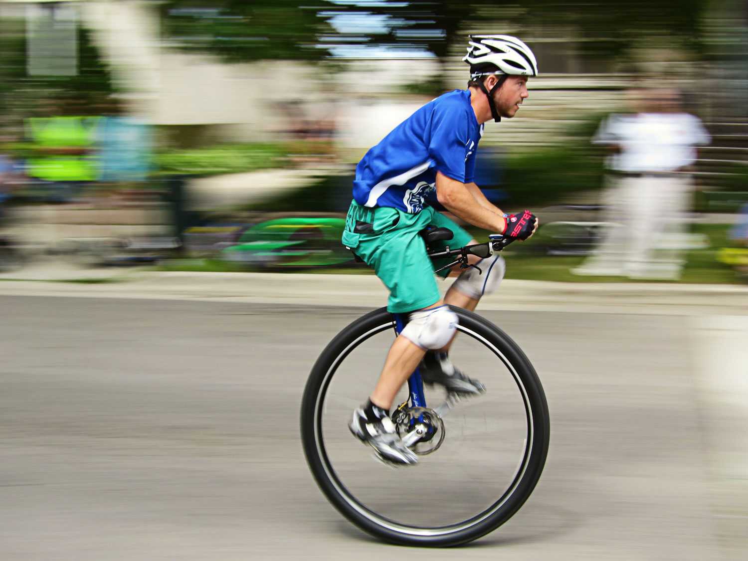 Уницикл по скорости уступает стандартному велосипеду, и только 36-дюймовое колесо ставит его наравне с полноценным байком.