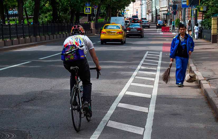 Еще один нюанс. В случае, если велодорожка местами разрушенная, либо занята, то ее можно объехать по проезжей части.