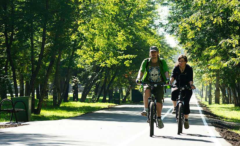 Езда на велосипеде разрешена с четырнадцати лет — по велодорожкам, велозоне вдоль дороги и пешеходным тротуарам.