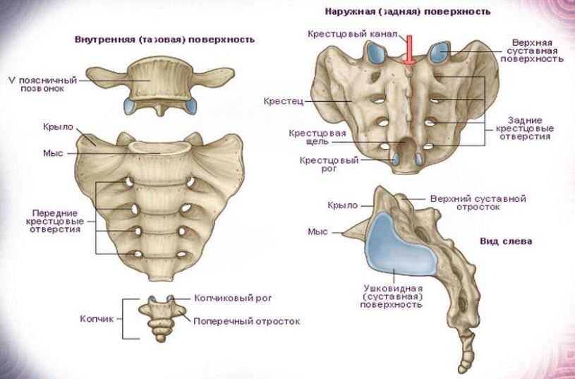 Кроме диска, соединение крестца и копчика имеет передние, задние продольные и боковые связки.