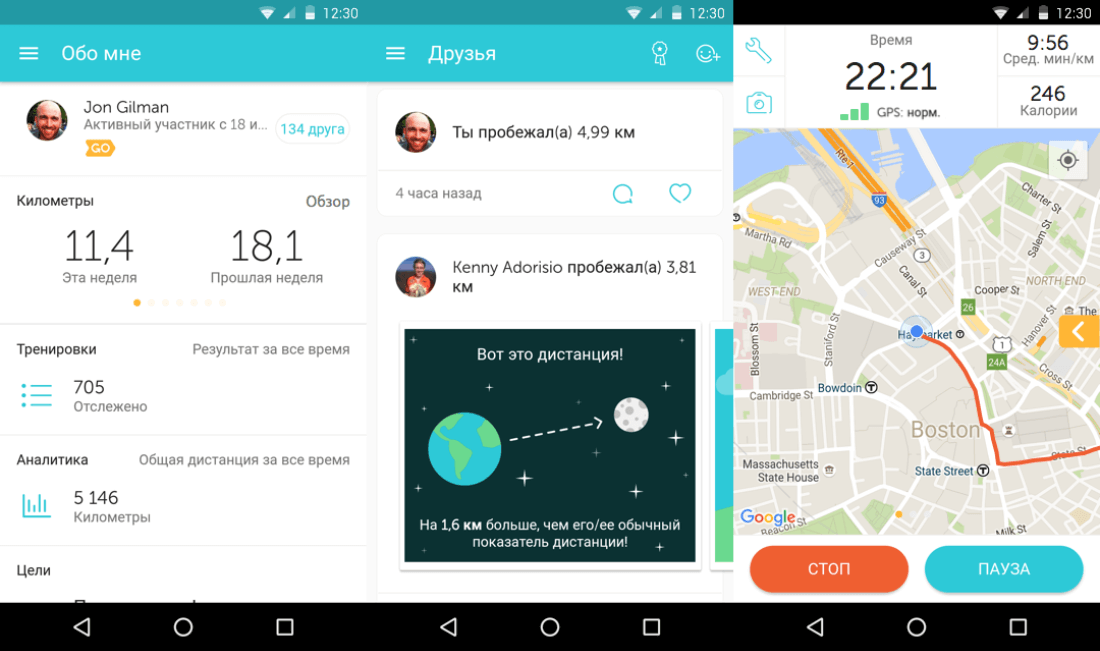 Map My Run отслеживает пройденное расстояние, считает калории, следит за вашим сном и дает еще огромное количество полезной информации, которую остается только правильно интерпретировать. Программа поддерживает популярные фитнес-аксессуары, включая Apple Watch. Приложение привыкает к пользователю и начинает предугадывать его предпочтения в тренировках. Среди недостатков Map My Run можно отметить отсутствие локализации на русский язык и большое количество рекламы.