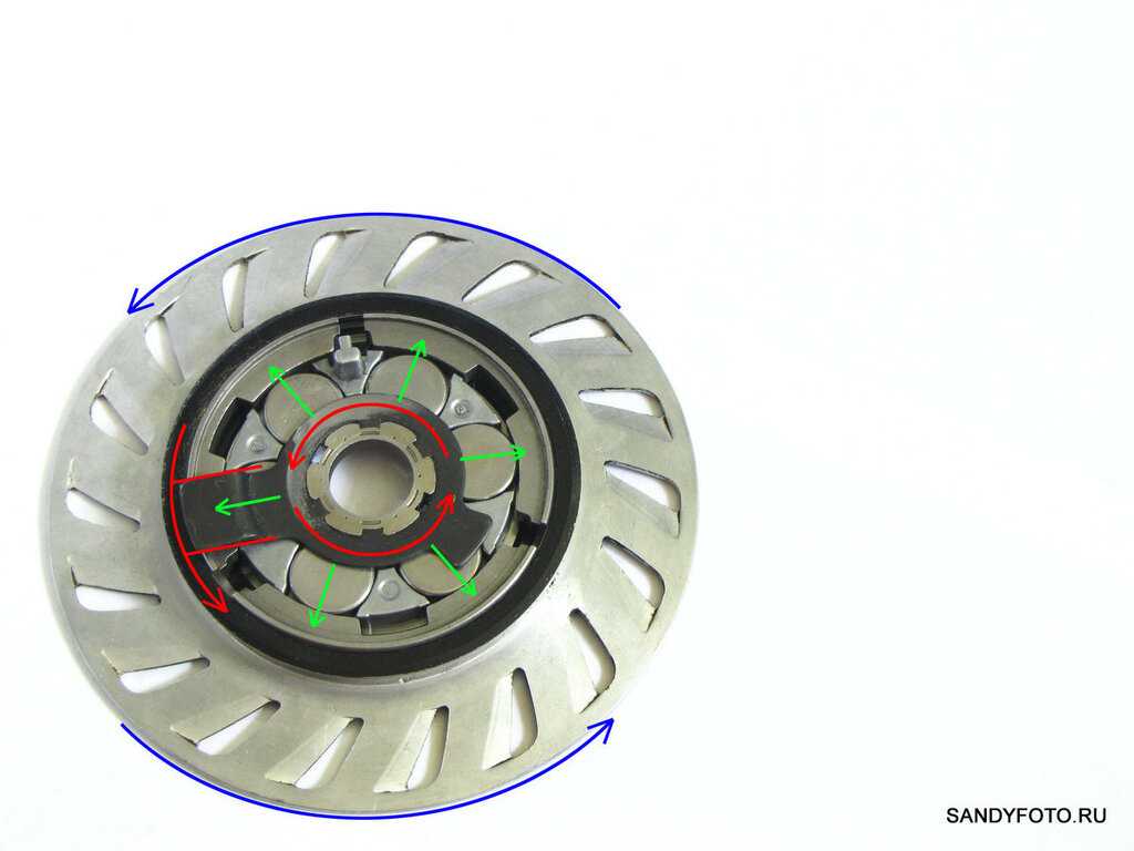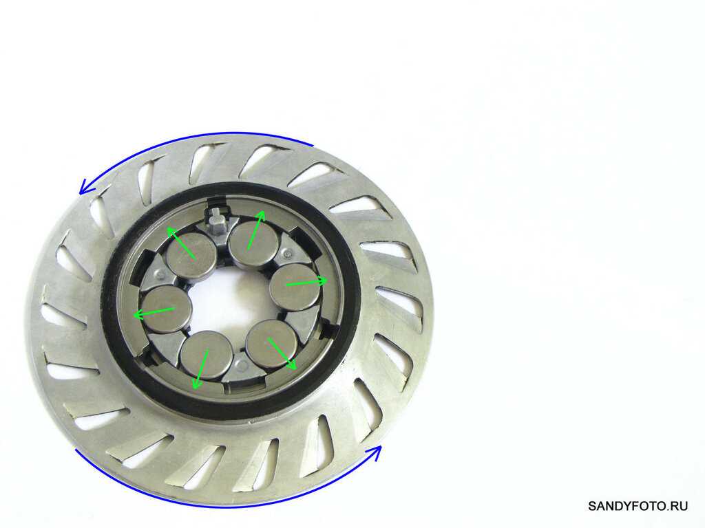 При повторной сборке необходимо аккуратно установить участки фрикционной поверхности. Выступ на деталях должен быть обращен вверх. Затем вставьте в отверстие сепаратор с предварительно установленными роликами. Его кольцо должно свободно вращаться относительно фрикционных накладок, люфты и заедания не допускаются.