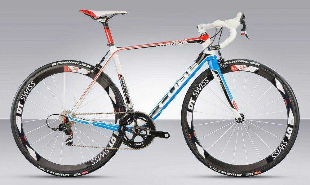 Модель от уже известной вам итальянской компании принесла победу на семи этапах Тур де Франс 2013 года и обеспечила сразу два места на пьедестале победителей. Вес карбоновой рамы этого велосипеда — 920 грамм, общий вес без педалей и держателя для фляги составляет 6,85 кг. Жёсткие алюминиевые колёса оснащены шинами фирмы Continental. Конечно, существуют модели более лёгкие, с лучшими аэродинамическими характеристиками, но, как признаются сами велогонщики, по совокупности параметров DOGMA 65.1 Think2 не имеет равных.