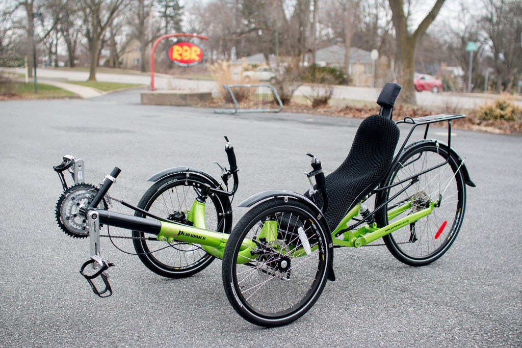 Разница с привычным всем райдерам двухколесным транспортным средством – наличие третьего колеса. Некоторые вертикальные трициклы имеют более комфортное седло, уменьшающее нагрузку на мышечные ткани спины. Часто имеют складную ромбовидную раму.
