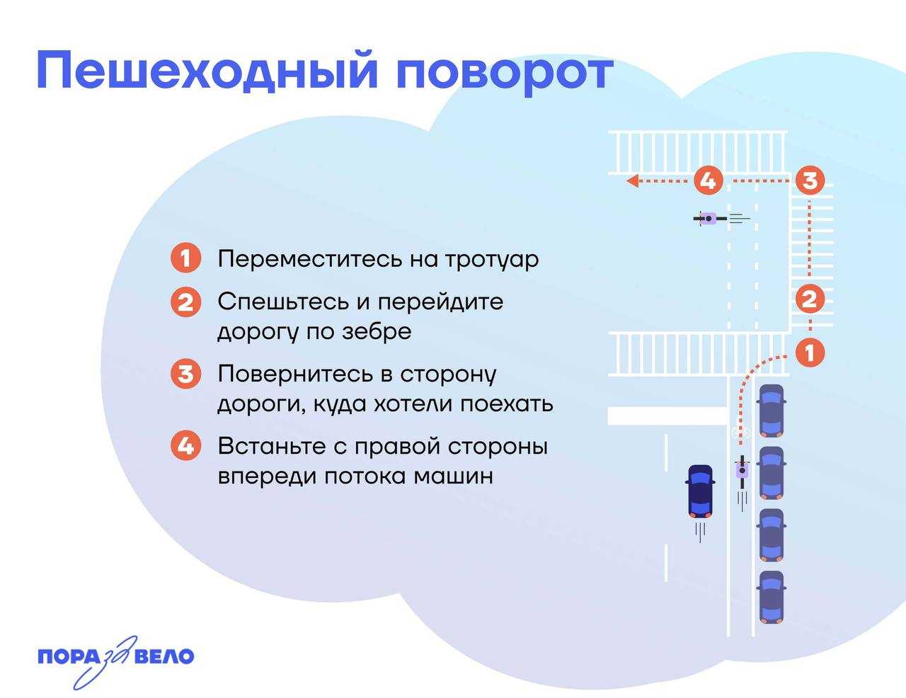Если есть несколько полос движения прямо или трамвайные пути, то поворачивать налево и разворачиваться нельзя. Перейдите пешком или сделайте «Пешеходный поворот».