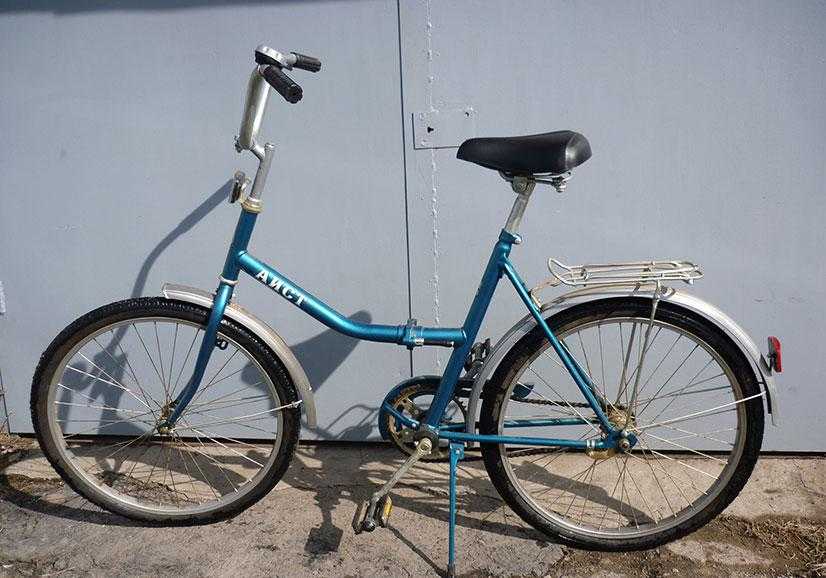 Второй распространённый советский велосипед – «Аист». Это уже полноценный взрослый байк с открытой рамой. Для большинства его обладателей была явным плюсом складная конструкция, с помощью которой велосипед можно было сложить и хранить в шкафу или другом месте.