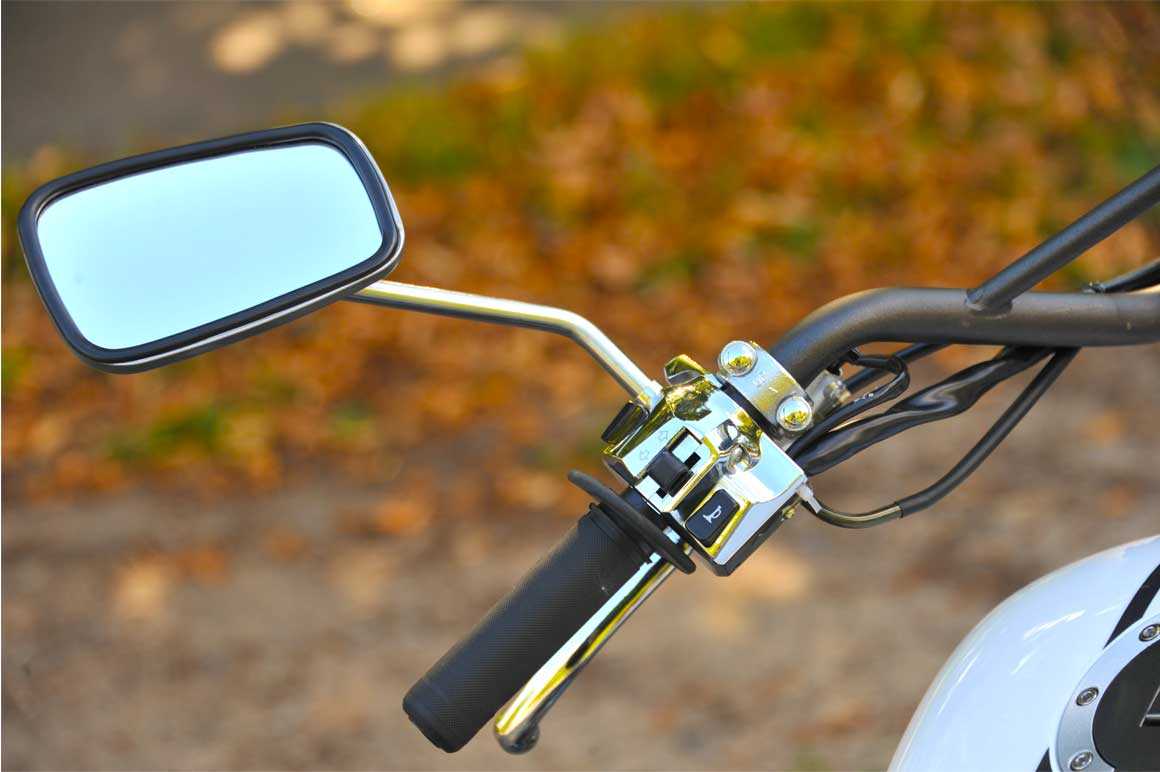 Уже в стоке мотоцикл идет с багажником, закрепляемым за сдвоенным сидением и несколько закрывающим обзорность заднего фонаря.