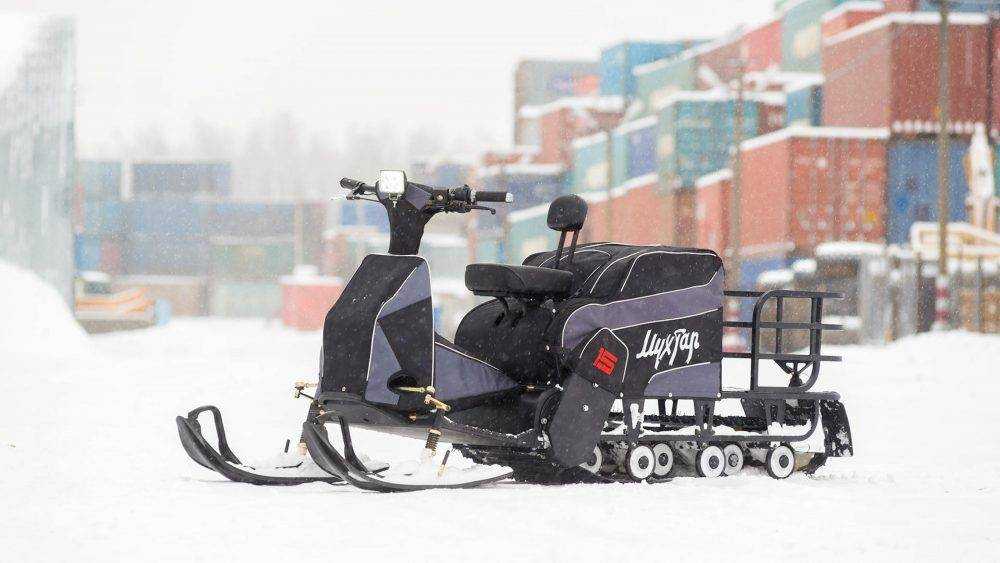 Компактное устройство, оснащенное вариатором. Отличный вариант для тех, кто любит одиночную охоту. Мощность двигателя – 7 л.с. Максимальный вес на сани – 150-250 кг, что является хорошим решением. Тип установленной подвески – катковая. Максимальный расход топлива – 1.5 л за час езды, это хороший показатель, учитывая вместительность бака в 3.6 литров. Можно укомплектовать сиденьем для дополнительного удобства.