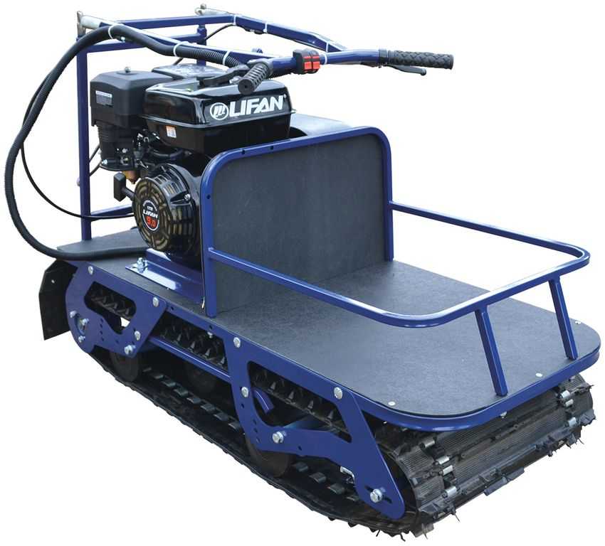 Качественный вариант, оснащенный дополнительными ребрами жёсткости. Модель легко обслуживается, что позволит провести это мероприятие даже в полевых условиях. Мощность двигателя – 6.5 л.с. Расход топлива – 2 литра в час, что является достаточно экономичным решением. Общая масса – 65 кг. Максимальная скорость – 18 км/ч. Имеется катково-склизовый модуль, что позволяет эффективнее применять транспорт.