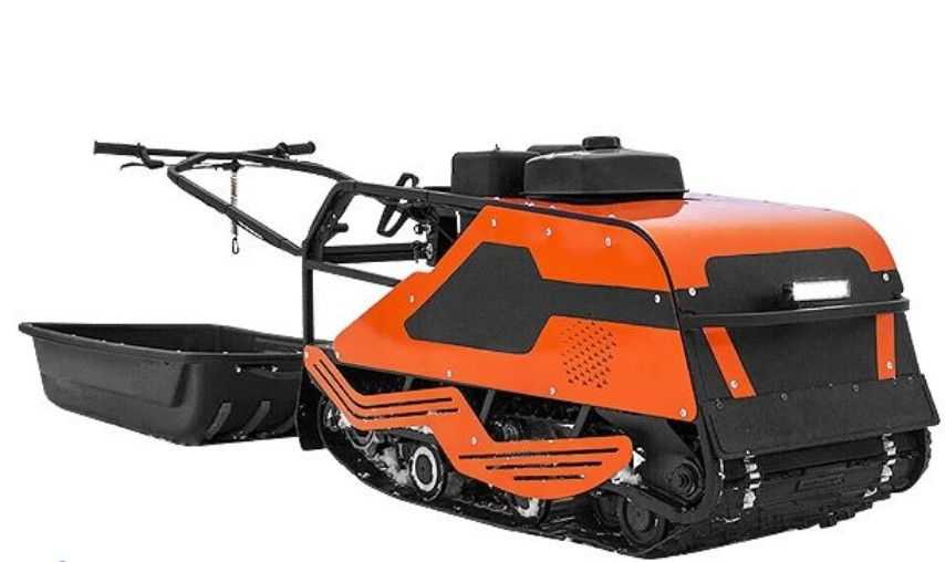 Что можно сказать об этой модели? Прежде всего, что ею легко управлять. Курок газа запускает мотор, а кнопка останавливает. Кроме того, двигатель без проблем заводится и при -30 градусах. Угол атаки катковой подвески равен 20 градусам, благодаря чему повышается устойчивость буксировщика и облегчается его движение по склонам.